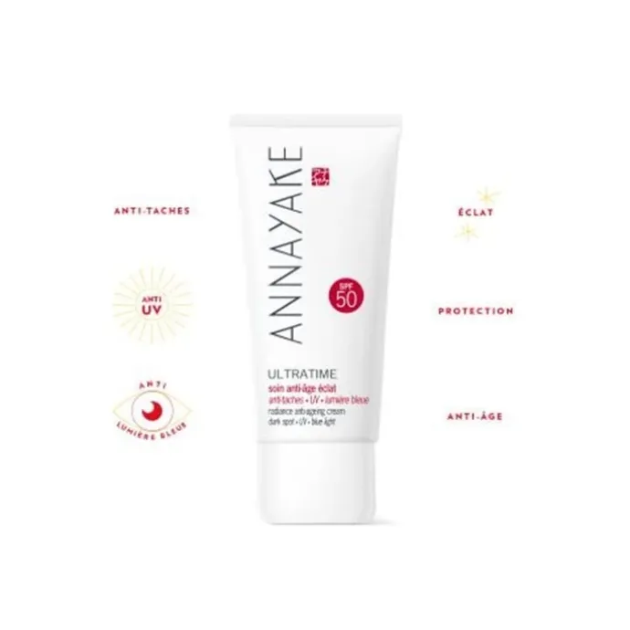 ANNAYAKE a associé une photoprotection SPF50 à un complexe d’actifs anti-âge pour agir simultanément sur les signes de l’âge et sur les agressions quotidiennes subies par la peau (UV, lumière bleue, pollution).