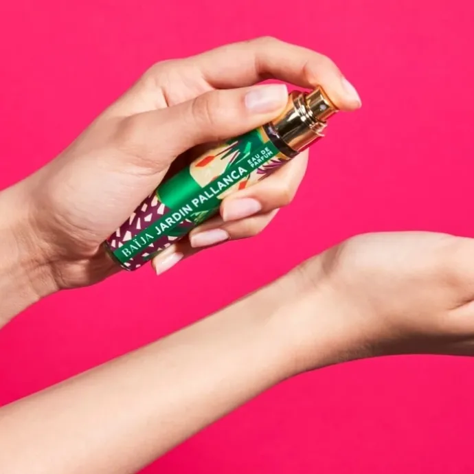 - Vaporisez l’Eau de Parfum sur les points de pulsation (poignets, derrière les oreilles et sur le cou).
