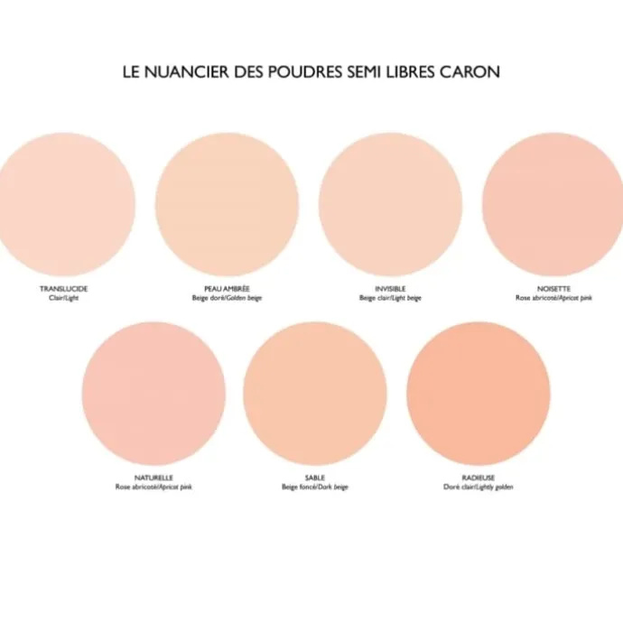 - Disponible en plusieurs teintes, la Poudre CARON se fond sur n’importe quelle carnation. Magique et ultra pratique !