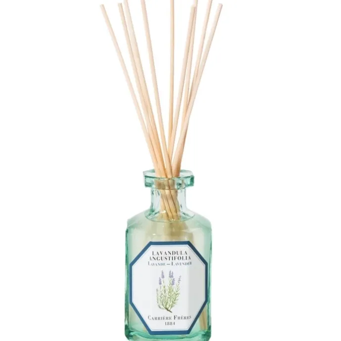 Véhiculant l’esprit d’une herboristerie d’antan, le diffuseur de parfums Carrière Frères prend la forme d’un flacon d’apothicaire : en verre recyclé et recyclable, il se teinte naturellement d’un reflet bleuté.