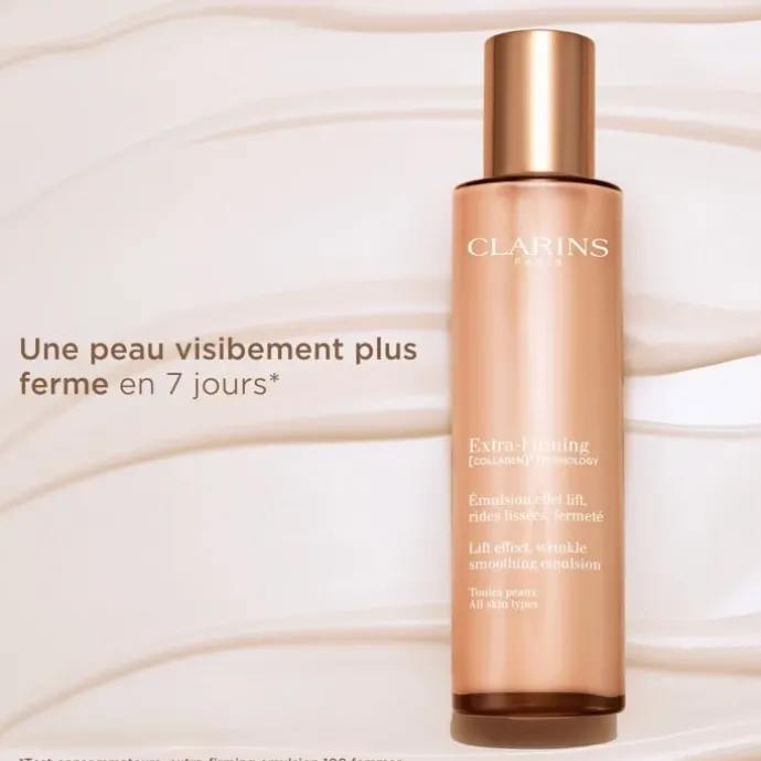 La Recherche Clarins crée un soin fermeté dont les puissants actifs aident à booster les réserves en collagène* pour une peau plus ferme en 7 jours**.