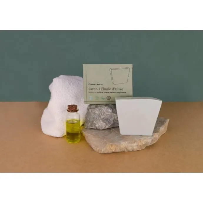 Le Savon à l’huile d’olive enrichi en huile de baies de laurier et argile verte COMME AVANT offre une solution de nettoyage visage et corps adapté aux peaux dotées d’imperfections cutanées afin de retrouver une peau plus saine et apaisée.