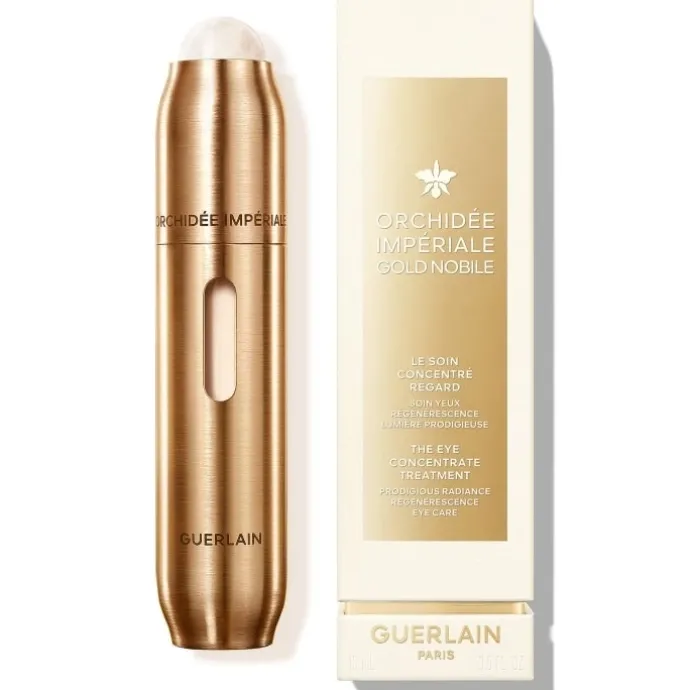 Guerlain crée Orchidée Impériale Gold Nobile Le Soin Concentré Regard pour raviver l’aura de jeunesse du regard.