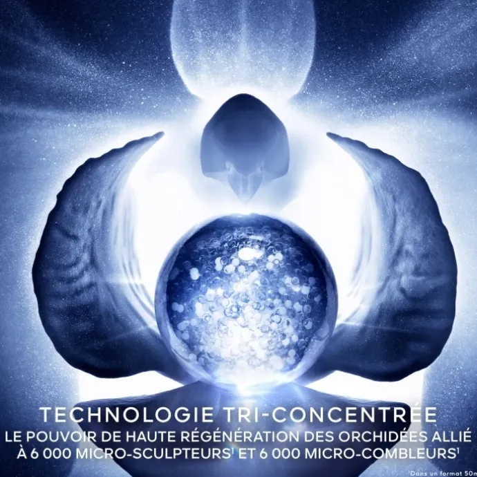 Ce soin complet d’exception concentre, pour la première fois, le pouvoir de 6 000 micro-sculpteurs³ et 6 000 micro-combleurs³ au sein de l’essence régénératrice d’orchidées² pour une métamorphose de la peau en 3 dimensions : hautement régénérés, raffermis et sculptés. Évalué par un panel de femme, les volumes du visage apparaissent rehaussés de 32%⁴.