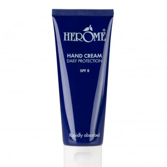 Herôme Crème pour les Mains est le soin quotidien des mains.Cette crème est directement absorbée par la peau et forme un film protecteur non gras qui aide à renforcer la protection naturelle de la peau. La crème contient des filtres solaires UVA-UVB, pour lutter efficacement contre le vieillissement, mais elle prévient aussi l’apparition des taches de pigmentation.