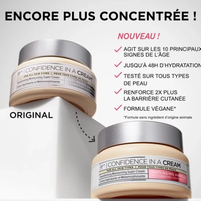 IT Cosmetics réinvente sa crème star de l’hydratation et de l’anti-âge dans une formule encore plus concentrée qui vous offre 48H d’hydratation en continu.