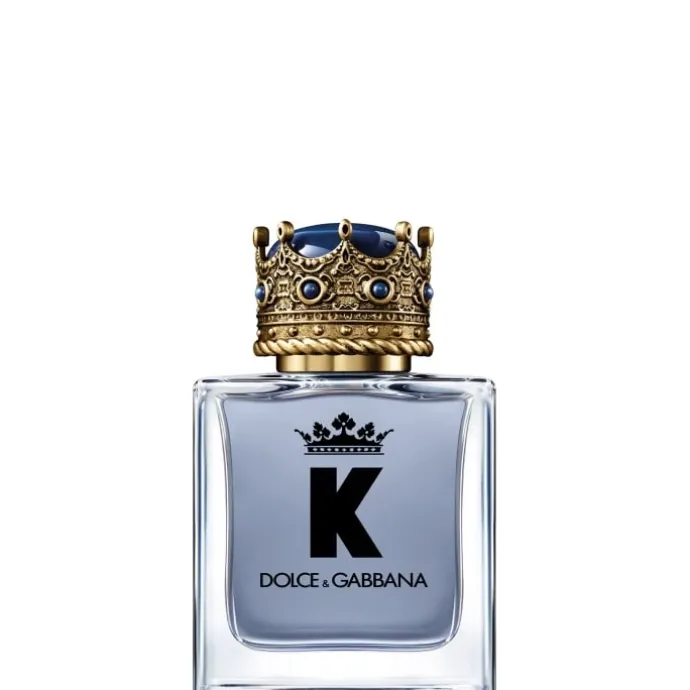 La couronne, qui surmonte le flacon de K by Dolce&Gabbana Eau de Toilette, agrémente ses formes géométriques.