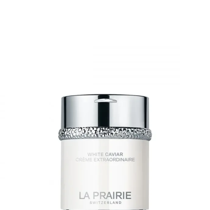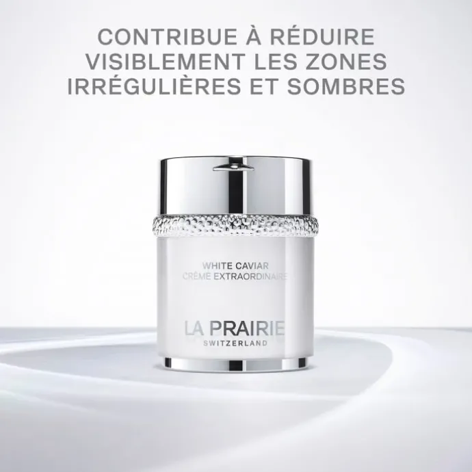 Dotée d’un effet illuminateur intense, la Crème Extraordinaire White Caviar La Prairie agit à la surface de la peau pour augmenter son pouvoir réfléchissant. C’est grâce à une molécule révolutionnaire, la Lumidose, que La prairie est parvenue à obtenir une action illuminatrice jusqu’alors jamais atteinte. Non seulement la Lumidose réveille l’éclat du teint, mais elle contribue à lutter contre les désordres pigmentaires à l’origine des taches brunes notamment. Ce soin révélateur d’éclat est enrichi d’un extrait de caviar doré reconnu pour ses vertus raffermissantes, ainsi que du Complexe Cellulaire exclusif qui revitalise la peau. Des agents exfoliants, lissants et hydratants viennent compléter la formule pour améliorer la texture et la qualité de la peau.
