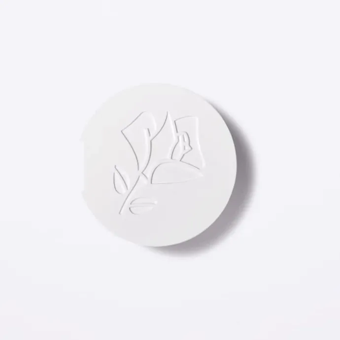 Composée d’acide hyaluronique hydratant et de niacinamide au pouvoir lissant, cette base solide se transforme en baume à l’application sur la peau.