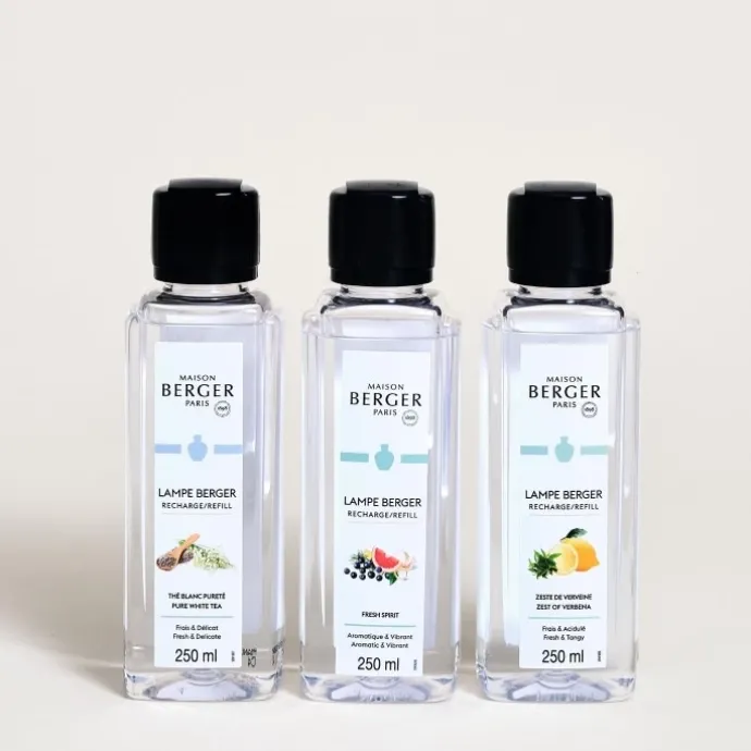 Installez une atmosphère fraîche et Estivale chez vous grâce au Coffret 3 recharges lampe Berger Estivale 250 ml, enrichi de notes dynamiques et de saison.
