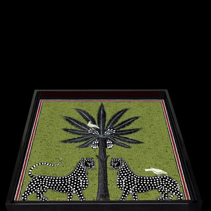 Ce plateau en laque vert est réalisé à la main. Il est parfait pour servir le thé, des boissons ou des douceurs.