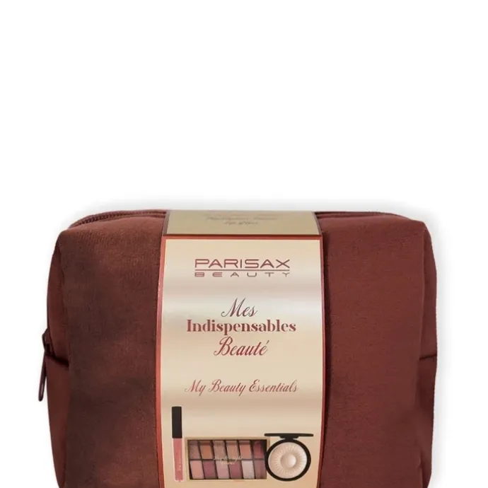 Découvrez les indispensables beauté dans une jolie trousse en velvet marron, ultra pratique à emporter !