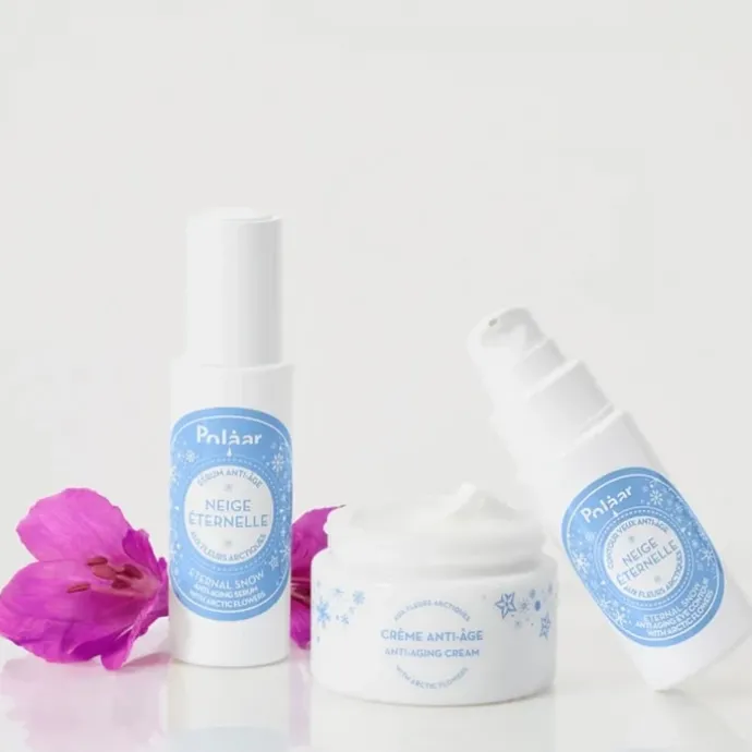 Son secret ? Une formule riche en Fleurs Arctiques antioxydantes et boosters de collagène, renforcée par la Globularia Cordifolia, fleur des montagnes aux bénéfices régénérants et éclat.