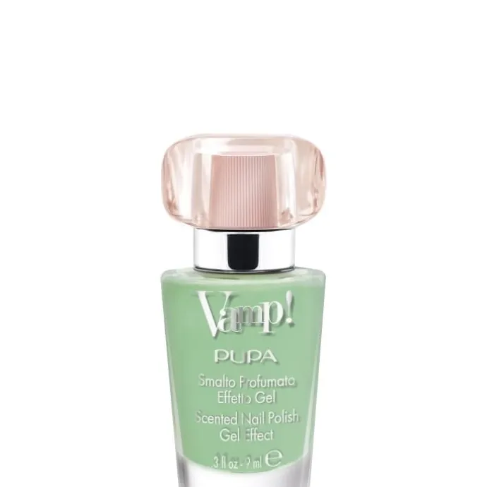 Vamp! est le vernis décliné dans les mêmes fragrances que l’Eau de Parfum Vamp!, pour des ongles délicatement parfumés à l’effet gel ravissant. Sa texture unique permet d’obtenir un effet épaississant tridimensionnel à la brillance extrême. Les ongles gagnent en volume grâce à un film de couleur homogène à la finition ultrabrillante, exceptionnellement résistant aux écaillements. Le parfum se révèle lorsque le vernis est sec et, grâce à la haute concentration de la fragrance présente dans la formule, les ongles sont délicatement et durablement parfumés. Le flacon rappelle une véritable miniature de l’Eau de Parfum Vamp! et reprend la forme iconique du mascara Vamp!. L’applicateur « fan brush » – au format plat en éventail doté de 300 poils arrondis – combiné au bouchon interne nervuré assure une application facile et fluide et un dosage uniforme et contrôlé de la couleur.