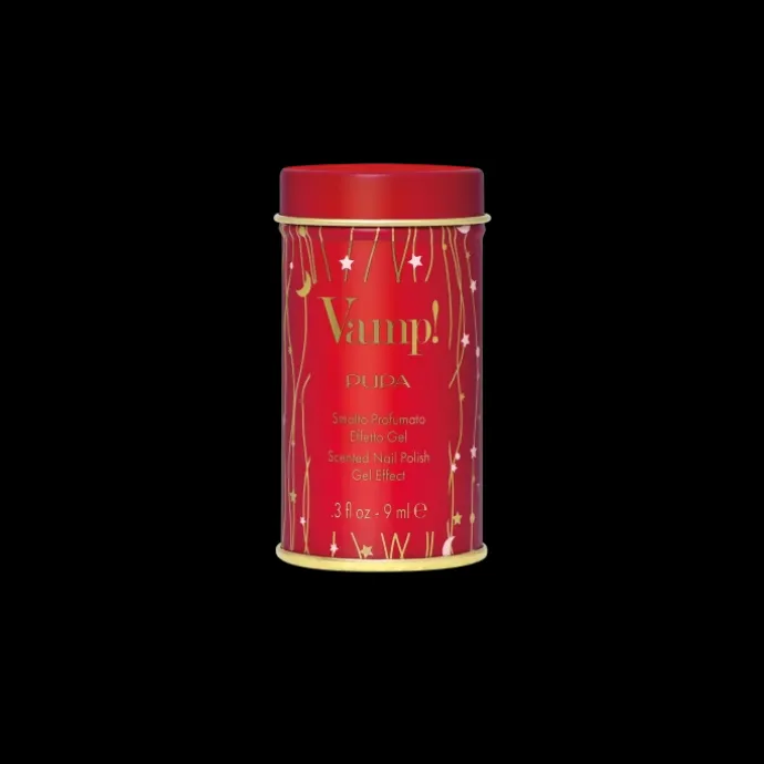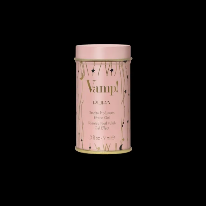 Le parfum se révèle lorsque le vernis est sec et grâce à la haute concentration de la fragrance présente dans la formule, les ongles sont délicatement et durablement parfumés. L’emballage rappelle une véritable miniature de Vamp! Eau de Parfum et reprend la forme emblématique de Vamp! Mascara. De plus, pour cette édition, il est enveloppé dans un petit coffret en métal décoré selon le thème « party season », parfait comme emballage cadeau. Il peut être réutilisé comme récipient pour aliments* et pas seulement !