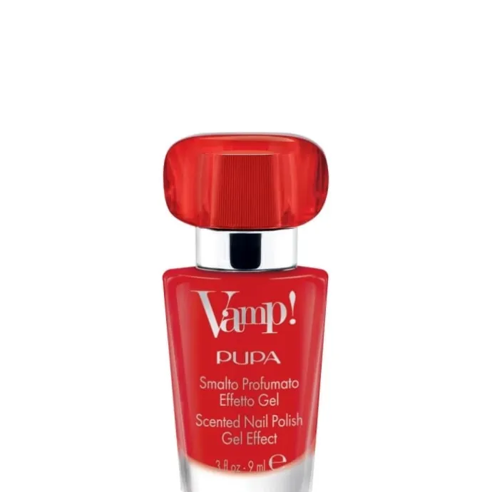 Vamp! est le vernis décliné dans les mêmes fragrances que l’Eau de Parfum Vamp!, pour des ongles délicatement parfumés à l’effet gel ravissant. Sa texture unique permet d’obtenir un effet épaississant tridimensionnel à la brillance extrême. Les ongles gagnent en volume grâce à un film de couleur homogène à la finition ultrabrillante, exceptionnellement résistant aux écaillements. Le parfum se révèle lorsque le vernis est sec et, grâce à la haute concentration de la fragrance présente dans la formule, les ongles sont délicatement et durablement parfumés. Le flacon rappelle une véritable miniature de l’Eau de Parfum Vamp! et reprend la forme iconique du mascara Vamp!. L’applicateur « fan brush » – au format plat en éventail doté de 300 poils arrondis – combiné au bouchon interne nervuré assure une application facile et fluide et un dosage uniforme et contrôlé de la couleur.