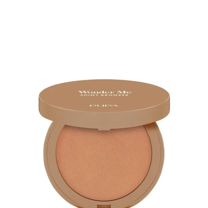 - Utilisez le maxi pinceau pour le visage ou le pinceau pour fard à joues rond Pupa pour répartir la poudre bronzante sur le visage, en insistant davantage sur les pommettes, les tempes et l’arête du nez.