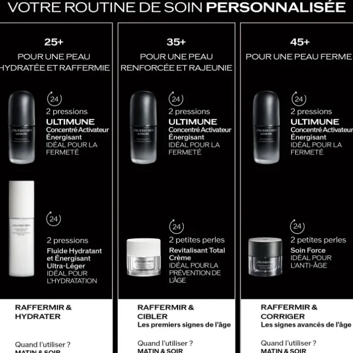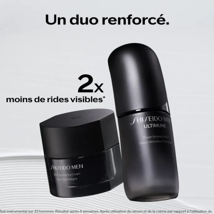 Shiseido Men Sérum Ultimune Activateur Energisant, un sérum haute performance pour agir au cœur de la peau des hommes pour réduire visiblement les signes de l’âge (perte de fermeté, rides, teint terne et pores dilatés) en une seule étape simple.