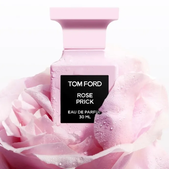 « Chair…Pétales…Épines. Rose Prick est un bouquet sauvage de belles roses. Une trilogie de rose de Mai, de rose turque et de rose bulgare. Pointues et immaculées, les épines perçantes des tiges s’accrochent les unes aux autres, liant leurs fleurs dans une perfection rose. » – TOM FORD