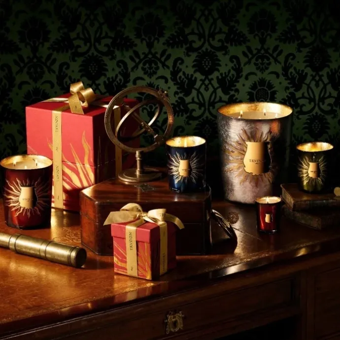 Pour les fêtes, Trudon vise les étoiles et propose une collection astrale de quatre bougies parfumées qui s’illuminent chacune de rayons d’or.