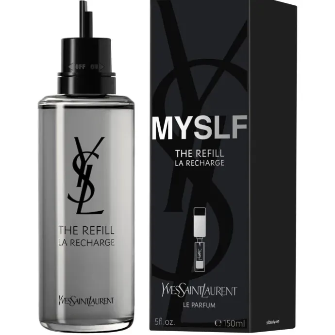 La recharge peut être utilisée sur les formats 40 ml, 60 ml et 100 ml de MYSLF Le Parfum, disposant de la mention « rechargeable » sur l’étui.