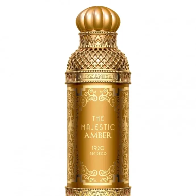 Alexandre J est un créateur français qui se décrit comme un « architecte des matières et des sens ». Amateur d’art moderne et ancien, il lance The Art Deco Collector à l’occasion des 100 ans de l’émergence du style Art Déco. Ce mouvement artistique, né au début des années 1900, se caractérise par la richesse et le faste de ses ornementations. Alexandre J rend ainsi hommage à la France des Années folles avec une ligne de 6 parfums à l’identité forte. Parmi ces fragrances, The Majestic Amber Alexandre J est une eau de parfum sortie en 2019, élaborée à partir de matières premières rares et précieuses.