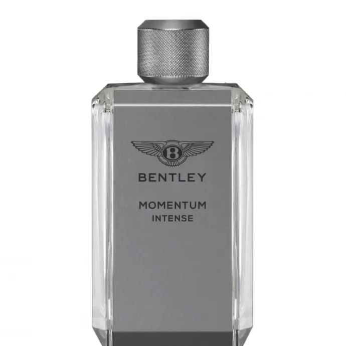 Inspiré par le vertigineux horizon new-yorkais, le design du flacon de Bentley Momentum exprime toute son assurance. Grand, rectangulaire et présentant de multiples facettes, il est façonné dans un luxueux verre épais. Des plaques de métal brossé argenté revêtent les deux faces du flacon, où sont imprimés l’emblématique « B » ailé Bentley et le nom du parfum. Un argenté foncé habille Bentley Momentum Intense. Un bouchon de métal tout en courbes, entièrement recouvert du moletage signature de Bentley, vient contraster les audacieuses lignes géométriques du flacon.