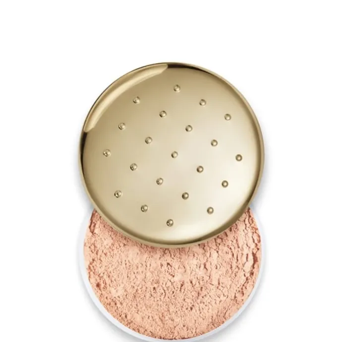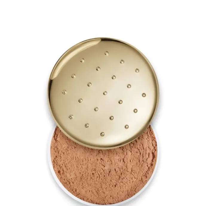 - Présentée dans son boîtier galbé doré à picots la poudre libre s’applique généreusement à la houppette.