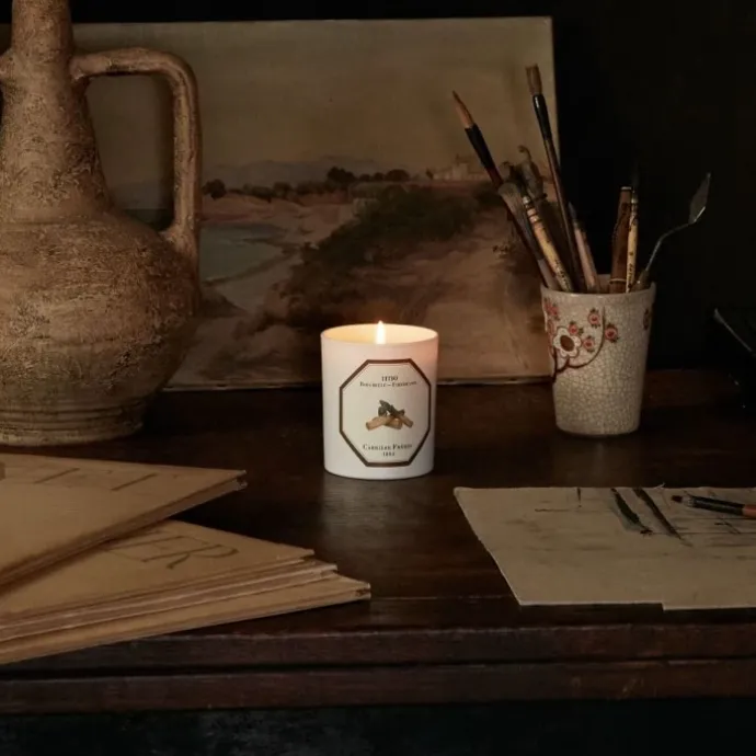 Chaque bougie est fabriquée suivant un savoir-faire ancestral et de manière artisanale dans notre atelier en Normandie ; leur parfum est issu d’un mélange de matières premières naturelles et de synthèse.