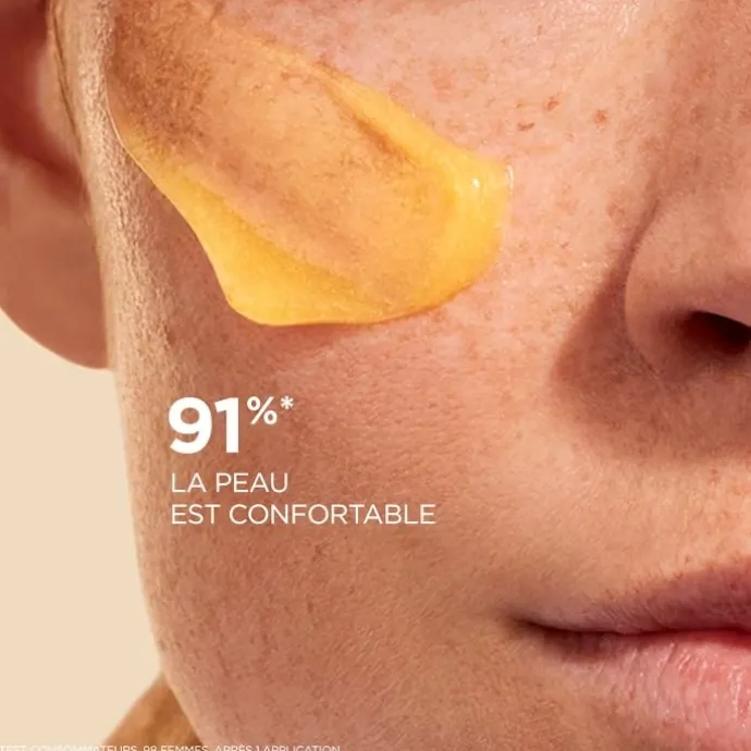 - Chauffez une noisette de produit entre vos mains et appliquez-la sur votre visage et votre cou propres et humides.