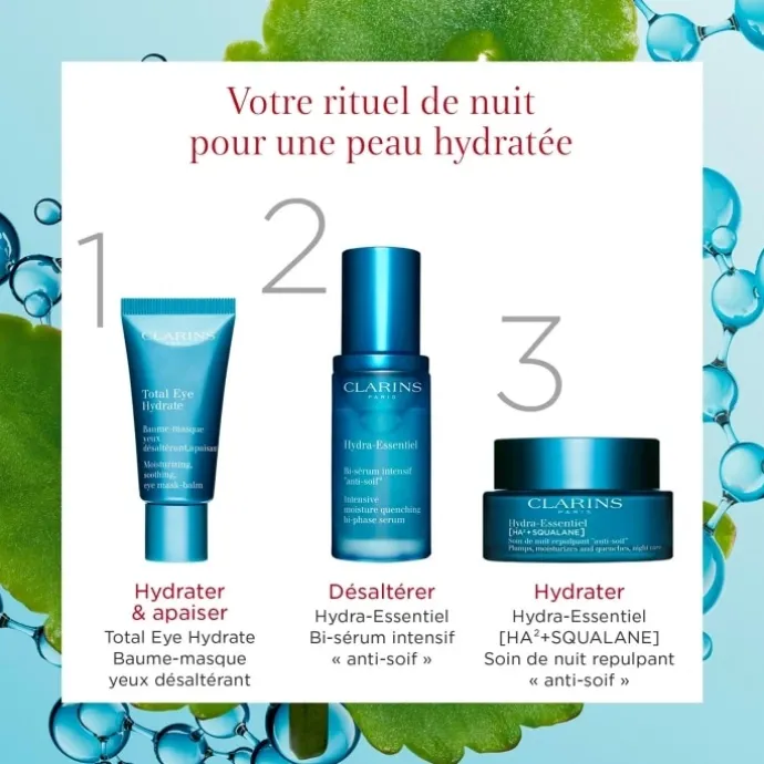 - Pour une efficacité hydratante et repulpante décuplée, appliquer préalablement le Bi-Sérum Intensif « Anti-Soif ».