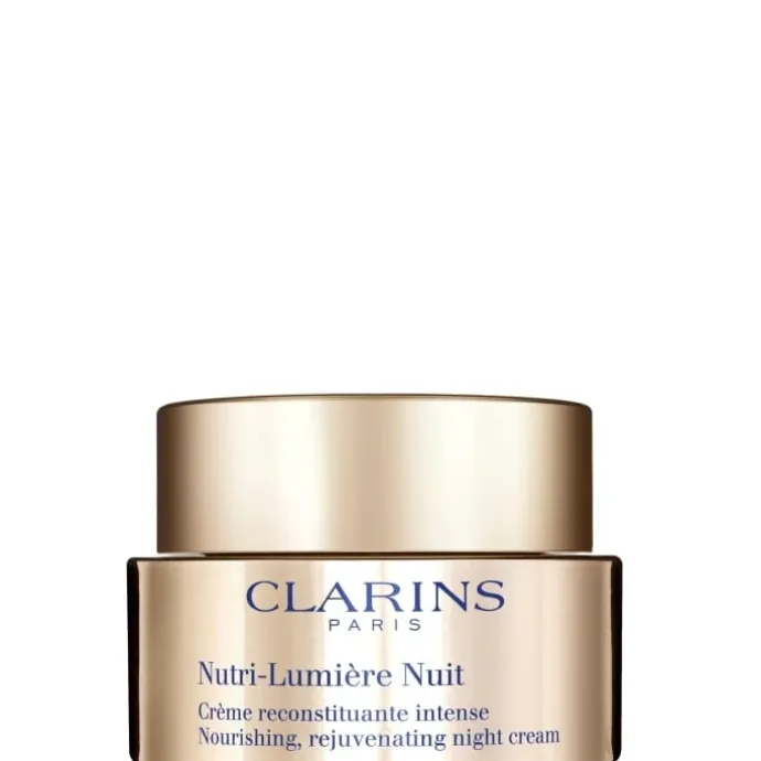 La crème de nuit reconstituante intense anti-âge Nutri-Lumière de Clarins est le complément idéal de Nutri-Lumière Jour, pour une peau nourrie, revitalisée et lumineuse au réveil.