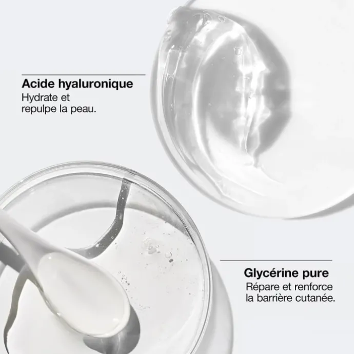 Sa formule enrichie d’acide hyaluronique et de glycérine pure rétablit l’équilibre entre la phase aqueuse et lipidique du film hydrolipidique de la barrière cutanée pour une peau visiblement plus saine.