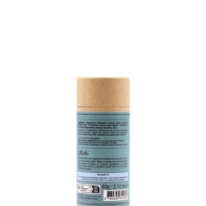 - Sans bicarbonate de soude, sans alcool, sans sel d’aluminium, sans huile de palme
