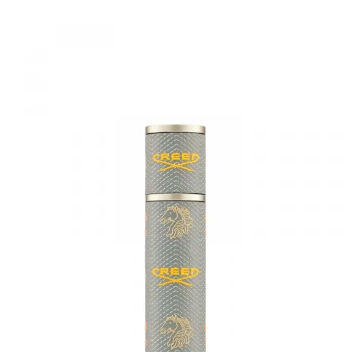 Façonné dans un cuir travaillé à la main, ce vaporisateur de voyage témoigne d’un savoir-faire d’exception et se décline ici dans une teinte gris classique embellie du motif Creed signature.