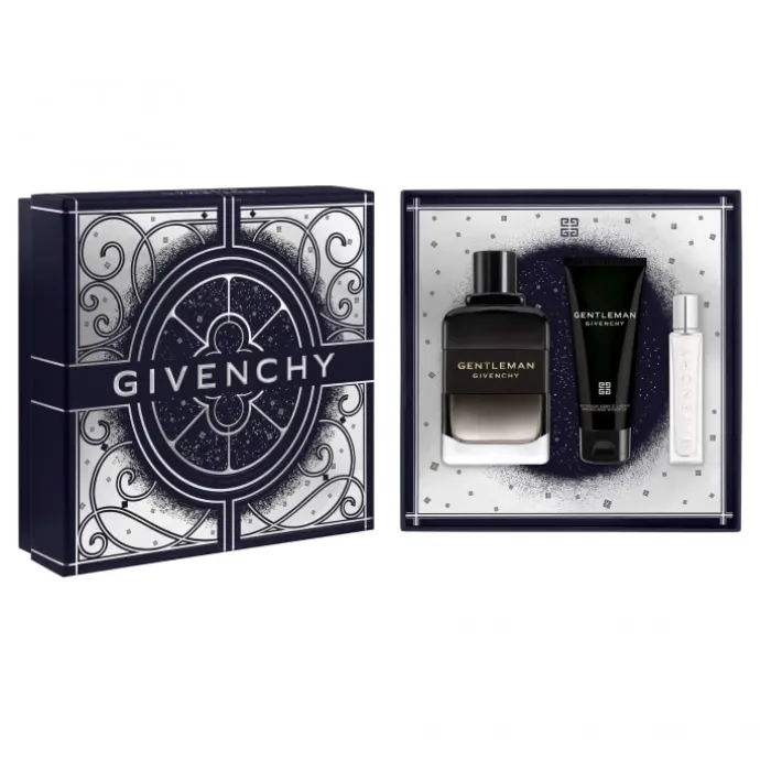Offrez l’inattendu avec un coffret parfum Givenchy pour homme composé d’une Eau de Parfum Boisée Gentleman Givenchy 100 ml, d’un gel douche corps et cheveux 75 ml, et d’un vaporisateur de voyage rechargeable 12,5 ml.