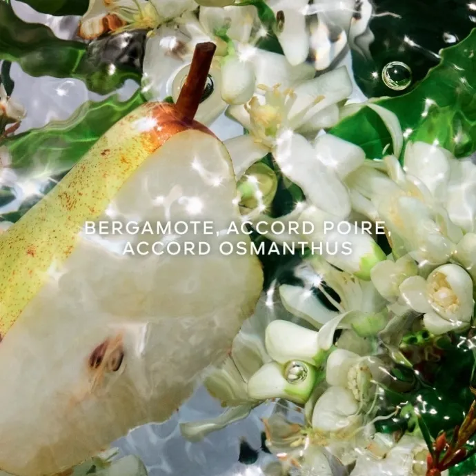 « Pera Granita, c’est la saveur d’un granité désaltérant à l’ombre des poiriers dans un jardin méditerranéen. » – Thierry Wasser, Maître Parfumeur Guerlain