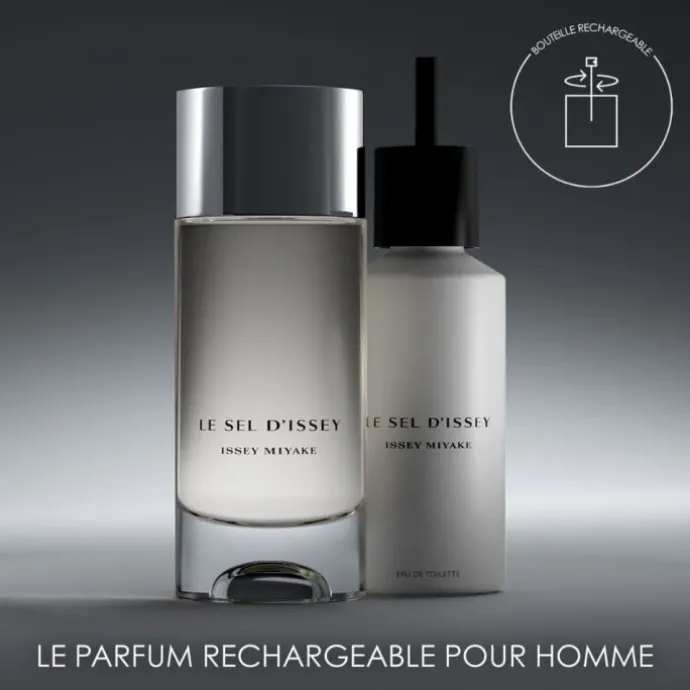 Le Sel d’Issey est disponible en deux formats 50 ml et 100 ml ainsi qu’une recharge de 150 ml.