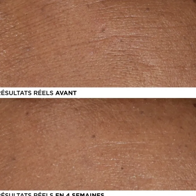 Constatez les résultats réels : une amélioration notable de l’élasticité de la peau, une peau plus lisse, plus rebondie et plus lumineuse, un teint plus uniforme et une réduction de l’apparence des rides et ridules en seulement quatre semaines.