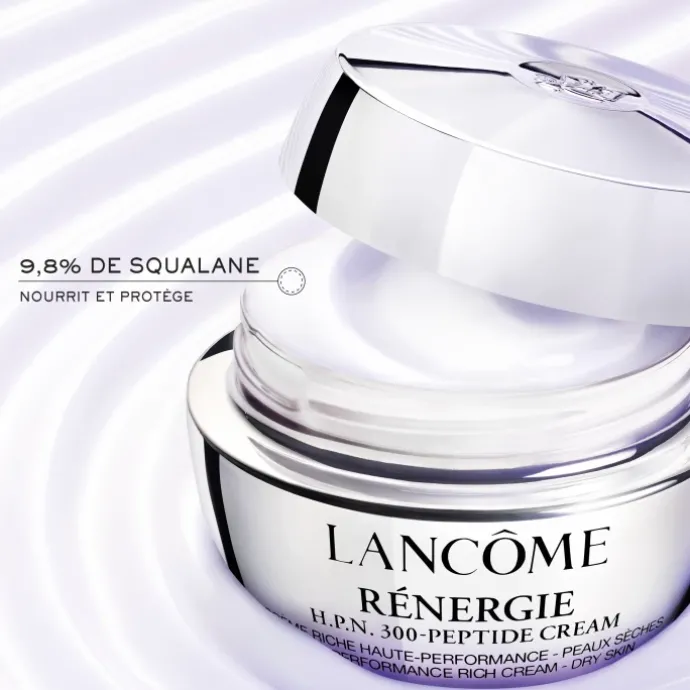 Pour les peaux sèches et sensibles, les laboratoires Lancôme adaptent la crème H.P.N. 300 PEPTIDE en y intégrant une concentration de 9,8% de squalane , ingrédient aux propriétés hydratantes et assouplissantes.