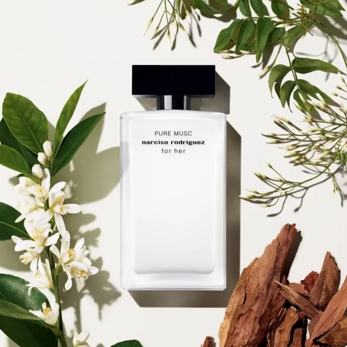 L’Eau de Parfum for her PURE MUSC rend hommage au musc signature, sublimé par un bouquet de fleurs blanches et des notes sensuelles de cashmeran.