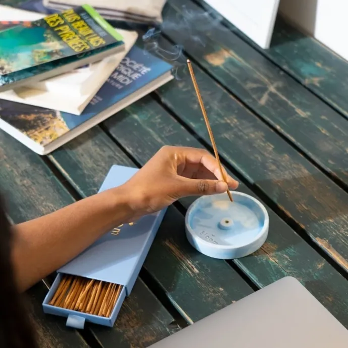 Profiter pleinement de vos encens Bloom en utilisant le porte-encens multicolore en béton.