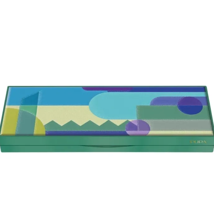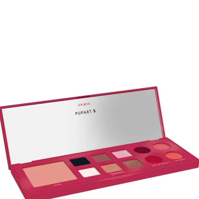Palette de maquillage consacrée au visage, aux yeux et aux lèvres.