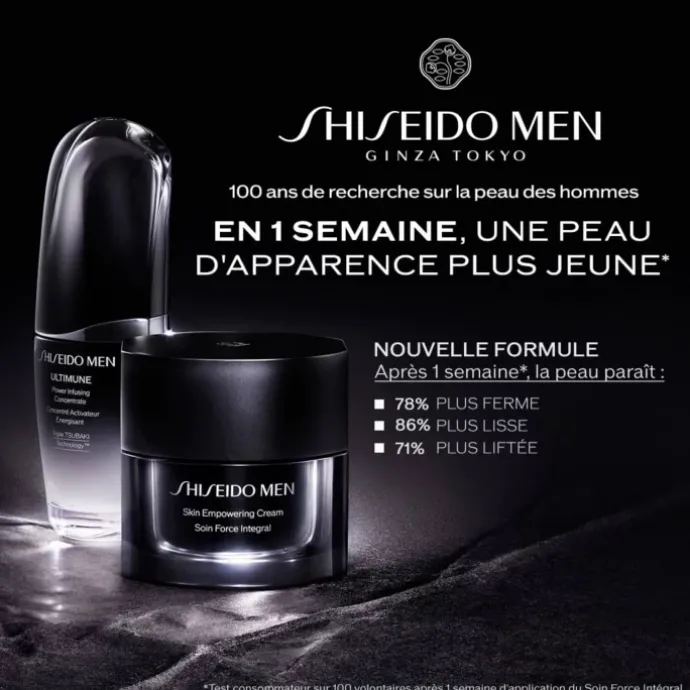 Elle repose sur la nouvelle découverte de SHISEIDO selon laquelle la peau masculine commence à présenter des signes de vieillissement comme les rides profondes dès la quarantaine (10 ans plus tôt que les femmes), ainsi que la perte d’élasticité et l’affaissement de la peau.