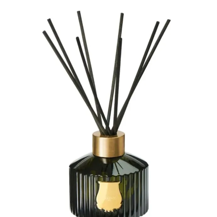 Façonné dans le même verre vert emblématique, le contenant cannelé de 350ml est orné d’un emblème doré et permet une diffusion passive d’une durée de 3 à 4 mois.