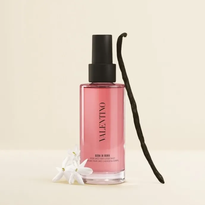 Découvrez la Brume Parfumée pour Cheveux et Corps au sillage signature Born In Roma de Valentino Beauty, pour une expérience sensorielle optimale.